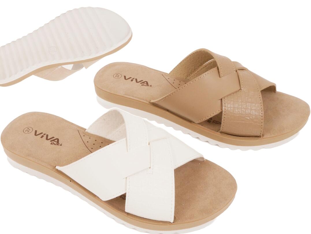 Damen Pantolette Kreuzband Kroko,36-41,VE 12