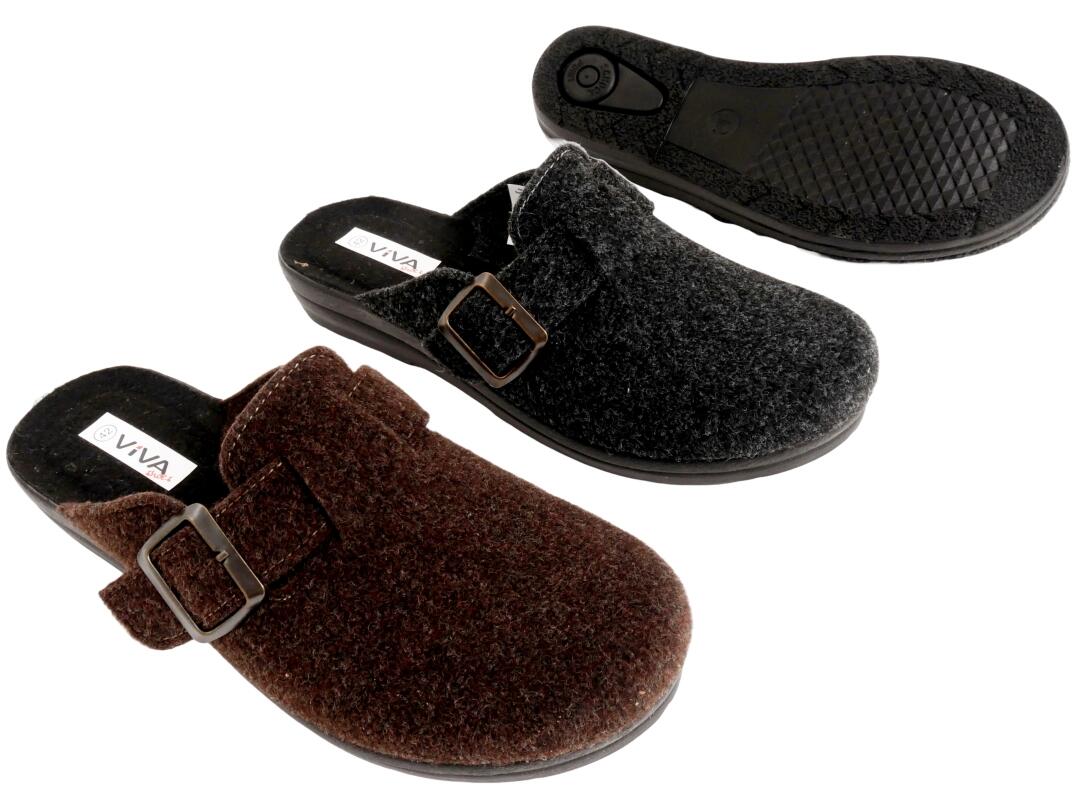 He Hauspantolette Filz mit Schnalle 41-46 VE 12