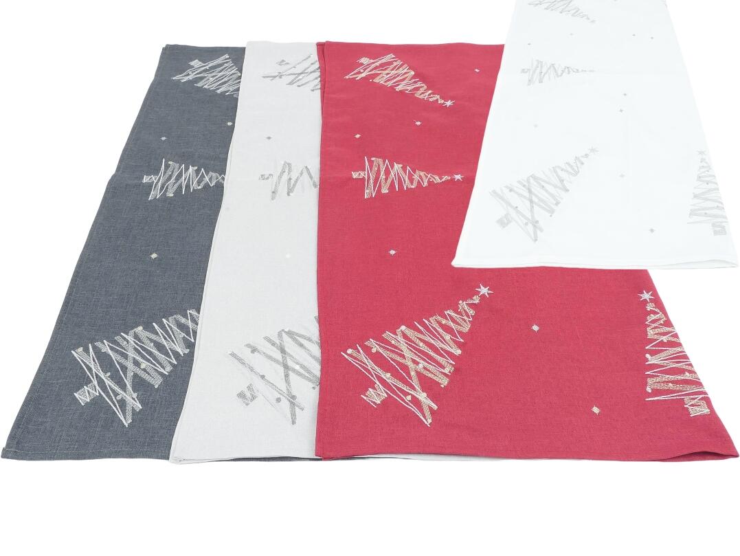 anthrazit, grau, rot, weiß mit geschmückten Weihnachtsbäumen